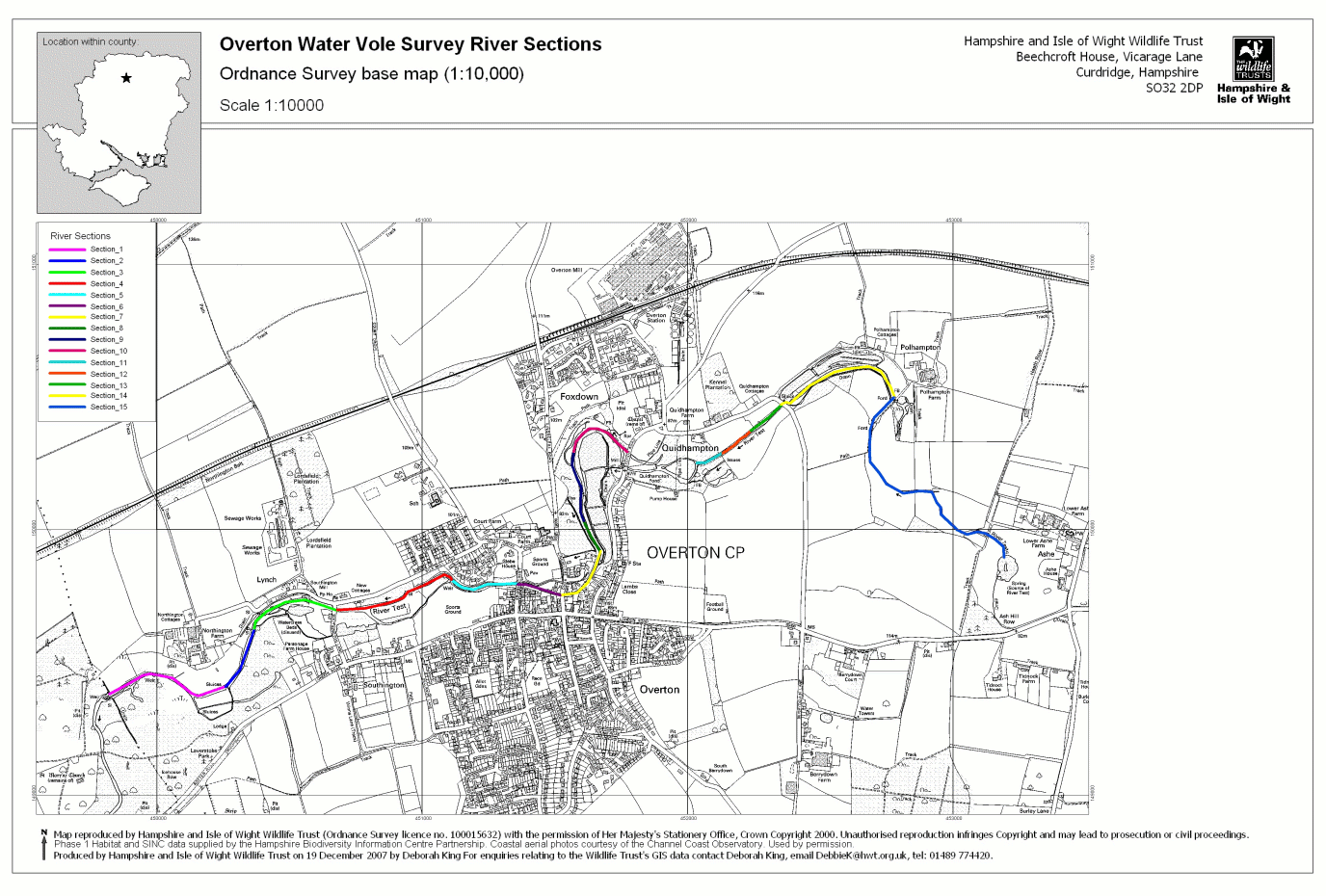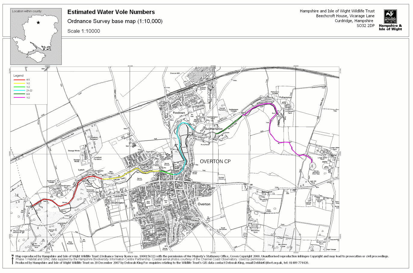 The object of this survey was to examine the entire length of the River Test within Overton parish searching for signs of the presence of water voles (Arvicola terrestris).